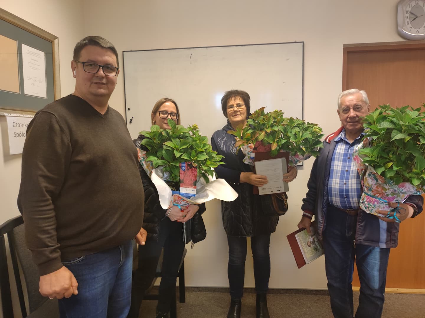 Wczoraj w siedzibie Spółdzielni gościliśmy laureatów naszego konkursu. Zdobywcy trzech równorzędnych nagród, Hanna Urbańska, Magdalena Zawadzka i Jacek Ruszczak odebrali z rąk Zastępcy Prezesa ds. Eksploatacyjno-Technicznych Tomasza Roślika (wszyscy na zdj.) podziękowania za udział w konkursie i upominki – książki oraz krzewy, które będą kolejną ozdobą ogródków. Pozostali uczestnicy również otrzymają książki i podziękowania.