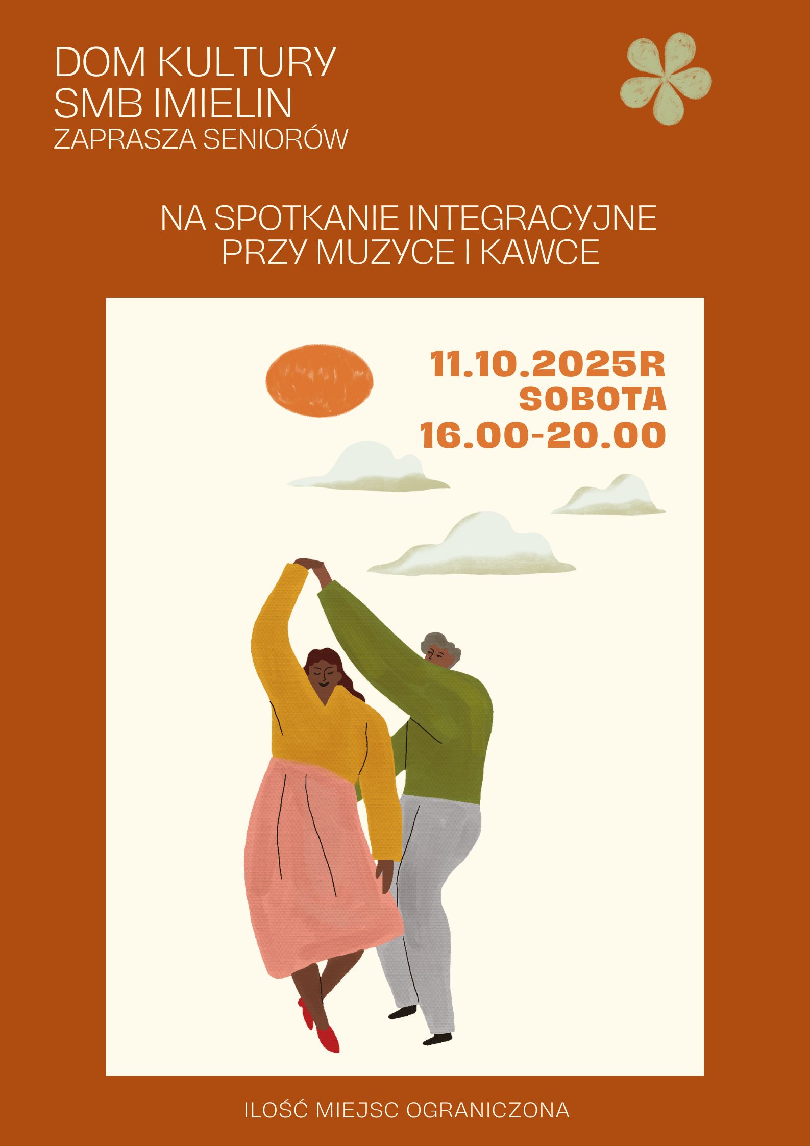 Warszawa, 06.10.2025 r. Dom Kultury SMB IMIELIN zaprasza seniorów na spotkanie integracyjne przy muzyce i kawce Gdzie: Dom Kultury SMB IMIELIN przy ul. Amundsena 4 Kiedy: 11.10.2025 r. (sobota) Godzina: 16:00-20:00