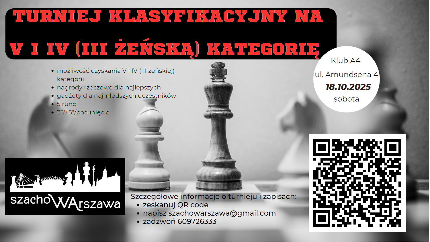 Turniej klasyfikacyjny na V I IV (III żeńską) kategorię Gdzie: Klub A4 przy ul. Amundsena 4 Kiedy: 18.10.2025 r. (sobota)